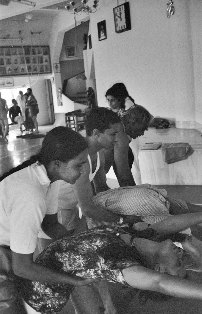 Guruji was very fast and efficient. In a group of 30 people he could adjust them all. That’s when you knew the power of the man, the strength that he had. Even in a difficult twisting pose like Ardha Matsyendrasana, he would tie you up into knots or he would be lifting you up in full arm balance, or flip-ping you over to Viparita Chakrasana and he would do it very fast.